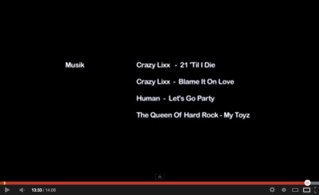 Filed under In The Media, Movies · Tagged with AHMED ABDULLAHI, ALBIN HILLBORG, ALEX HUMMINGSON, ALEXANDRA HUMMINGSON, ANNELI OSSIANDER, Arts and Entertainment, BAND, BONNE LÖFMAN, CATRINE JOHANSSON, classical music, composer, CRAZY LIXX, DANIEL HAGBERG, FREDRIK ALBERTSSON, GLAM, GRO SKARSGÅRD, HAPPY JANKELL, HUMAN, interview, JANET SIMMONS, JENS MATTSSON, JOY KORS, KAJSA STINA THUSBERG, LENNART TÖRNQVIST, LIPZ, LISA LUNDGREN, LUDVIG TURNER, MARIA LJUSLIN, MARKUS FRYKBERG, MATTIAS POLLAK, MICAELA MOBERG, MIKAEL LÖNNQVIST, MIKAEL MÅNSSON, Music, MUSIC CREDITS, MY TOYZ, NIKLAS JOHANSSON, POMPEI NIGHTS, rock, SCANDIC MALMEN, SHORT FILM, songwriter, Soundtrack, Stockholm, STOCKHOLMS FILMSKOLA, SUSANNA GEJROT, sweden, The Queen of Hard Rock, THERESE KARLSSON, TOVE LUNDGREN, VALLA TORG, WALLA SCEN, YouTube